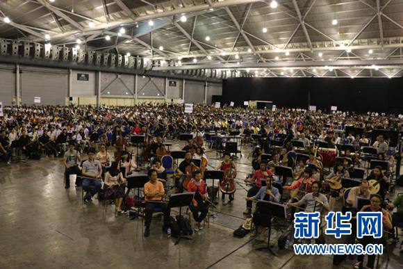 图为新加坡史上最大型华乐演出《全民公乐2014》首次大型彩排现场