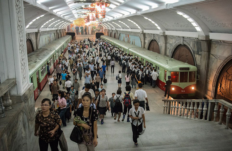 朝鲜平壤地铁一景。(网页截图)