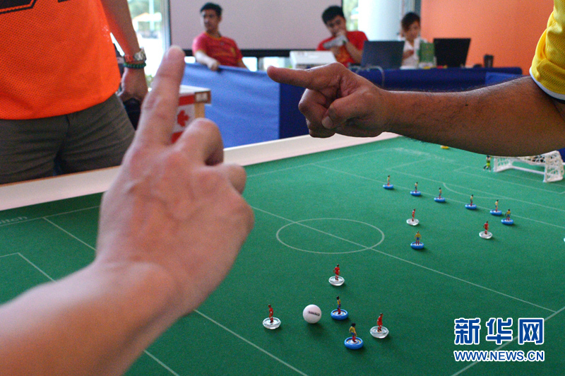 6月29日,桌上足球爱好者参加在新加坡战备军人协会大巴窑俱乐部举行的桌上足球赛。当日,新加坡桌上足球协会在新加坡大巴窑战备军人协会举行桌上足球锦标赛。邓智炜摄