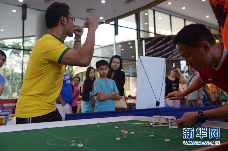 6月29日,桌上足球爱好者参加在新加坡战备军人协会大巴窑俱乐部举行的桌上足球赛。当日,新加坡桌上足球协会在新加坡大巴窑战备军人协会举行桌上足球锦标赛。邓智炜摄