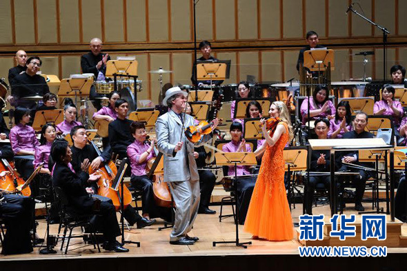 新华网新加坡频道7月6日电(记者 左昊畅 实习记者 陈丽婷)7月5日晚,新加坡华乐团携手格莱美得主、美国著名小提琴家兼作曲家马克·欧康诺(Mark O’connor),为狮城观众献上一场中西合璧的演出。新加坡华乐团音乐总监葉聪担任本场音乐会指挥,玛姬·蒂森(Maggie Dixon)担任客座小提琴演奏。