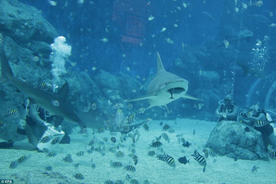 新加坡现潜水员徒手喂鲨鱼 惊呆小伙伴(高清组图)