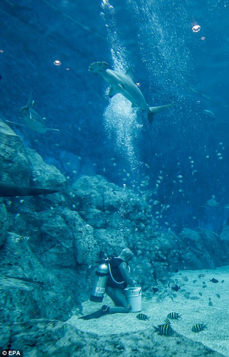 新加坡现潜水员徒手喂鲨鱼 惊呆小伙伴(高清组图)