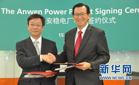 图为9月15日重庆市能源投资集团董事长冯跃(左)与胜科工业集团总裁兼首席执行官邓建辉签署安稳电厂项目合同现场。