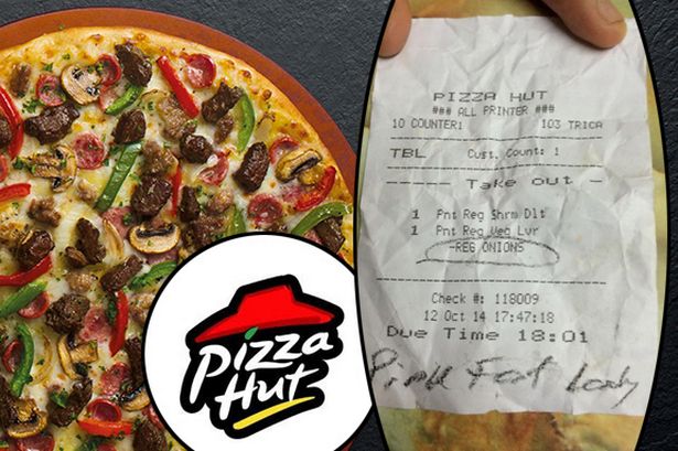 这名顾客从必胜客买了两块披萨,拿到收据时发现上面写着“粉红肥女人”字样。
