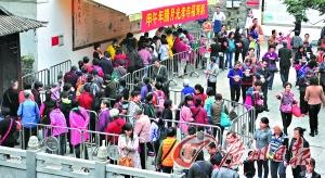 ▲光孝寺举行腊八节施粥活动,领腊八粥的市民排起了长队。 广州日报记者廖雪明 摄