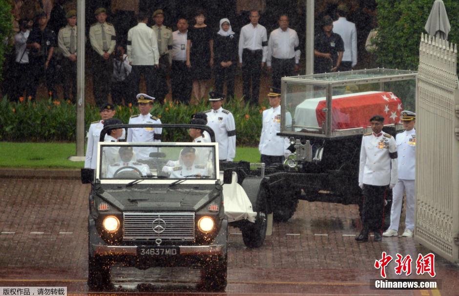 当地时间3月29日,新加坡建国总理李光耀的国葬仪式29日举行,移灵队已从国会大厦出发,前往举行国葬礼的新加坡国立大学文化中心。