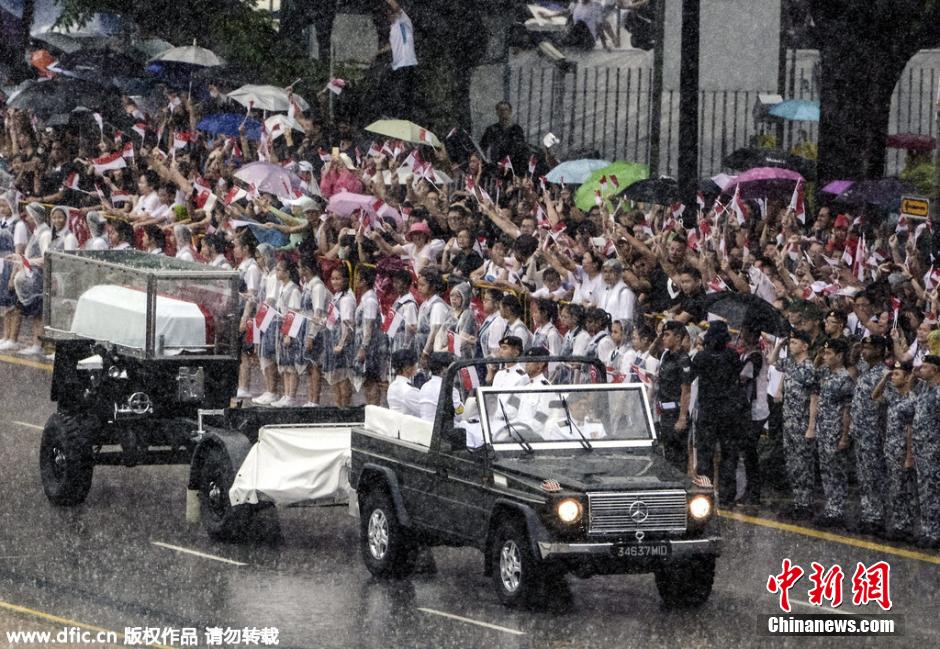 当地时间3月29日,新加坡建国总理李光耀的国葬仪式29日举行,移灵队已从国会大厦出发,前往举行国葬礼的新加坡国立大学文化中心。图片来源:东方ic 版权作品 请勿转载
