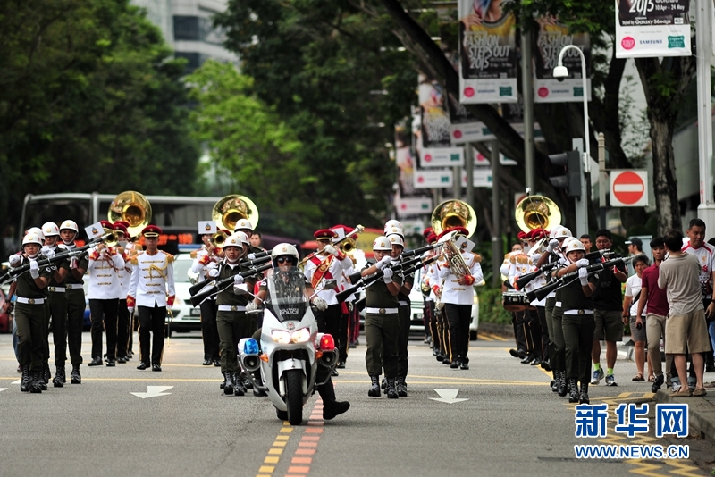新加坡总统府举行宪兵换岗仪式及操枪表演