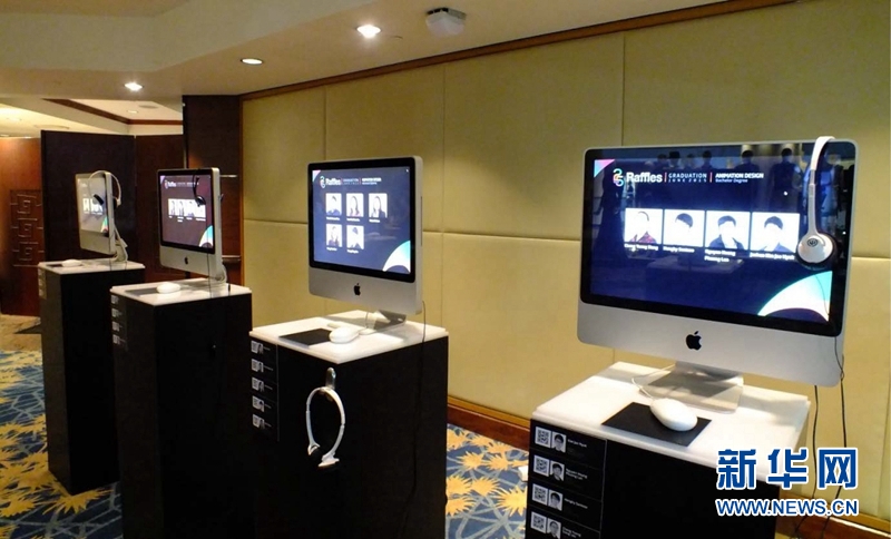 为庆祝建校25周年,新加坡莱佛士高等教育学院近日举办毕业生作品展及时装秀,为6月至12月的多项庆祝活动拉开序幕。图为多媒体、动漫、游戏设计专业毕业生设计作品。