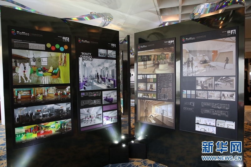 为庆祝建校25周年,新加坡莱佛士高等教育学院近日举办毕业生作品展及时装秀,为6月至12月的多项庆祝活动拉开序幕。图为室内设计专业毕业生设计作品。