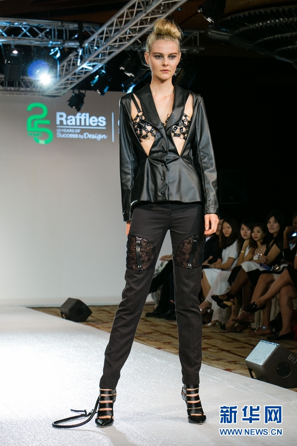 为庆祝建校25周年,新加坡莱佛士高等教育学院近日举办毕业生作品展及时装秀,为6月至12月的多项庆祝活动拉开序幕。图为时装设计专业毕业生设计作品。