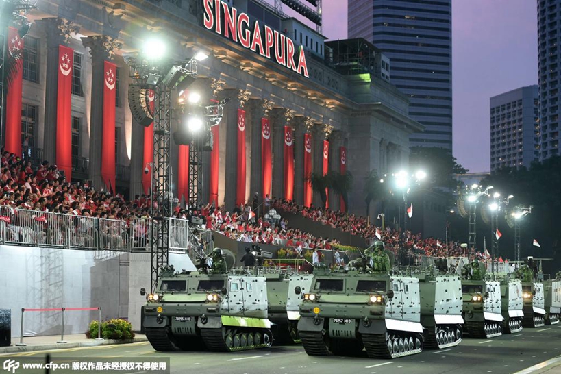 当地时间2015年8月9日,新加坡巴东,新加坡举行阅兵庆祝独立50周年。 (图片来源:CFP视觉中国)