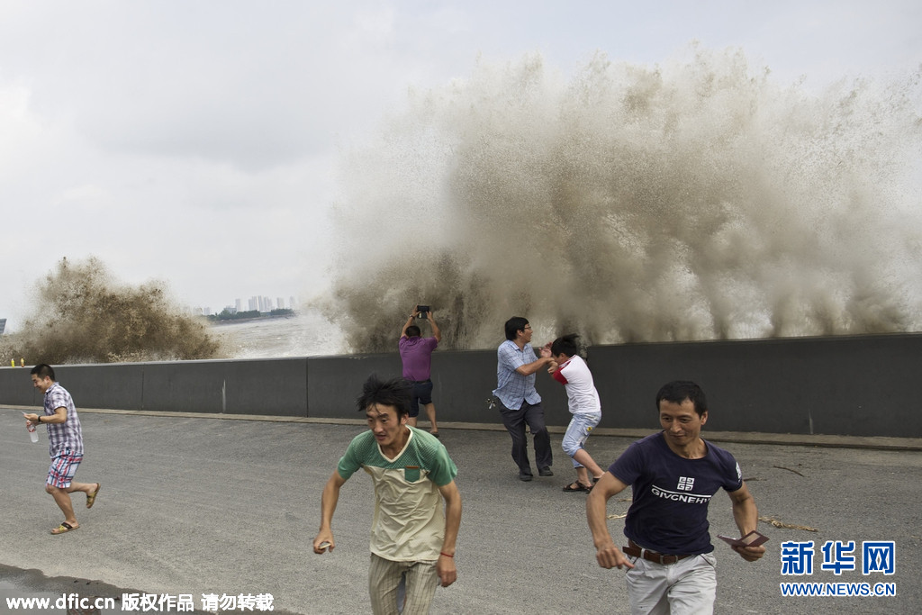 钱塘江大潮掀巨浪 观潮人成“落汤鸡”