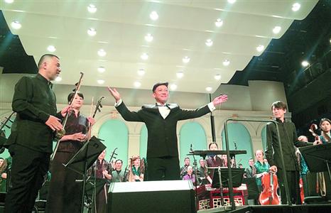 郭勇德(中)指挥上海民族乐团刮起南洋风。周薇摄