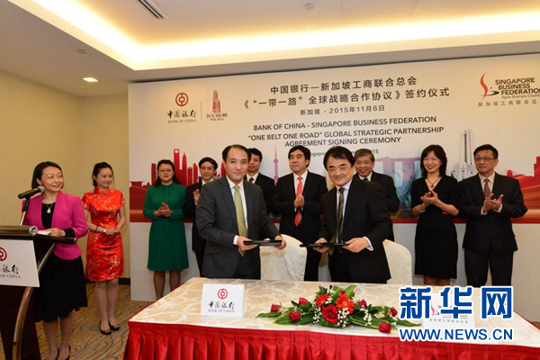 新华网新加坡频道11月7日电(记者左昊畅) 中国银行与新加坡工商联合总会6日签署《中国银行—新加坡工商联合总会“一带一路”全球战略合作协议》(下称“协议”)。中国银行董事长田国立与新加坡工商联合总会主席张松声出席并见证协议签署。