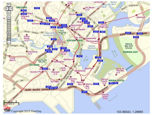 电子道路收费系统由电子收费闸门、带现金卡的车载单元和中央控制系统三部分构成,电子收费闸门遍布新加坡各大高速公路和主干道上。据新加坡陆路交通管理局(简称陆交局)最新的统计简报,截至2014年,新加坡共有电子收费闸门77个。