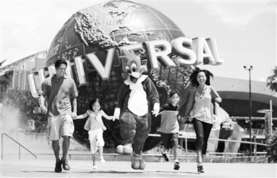 图为新加坡环球影城前华人家庭欢乐游玩。(来源:昵图网)
