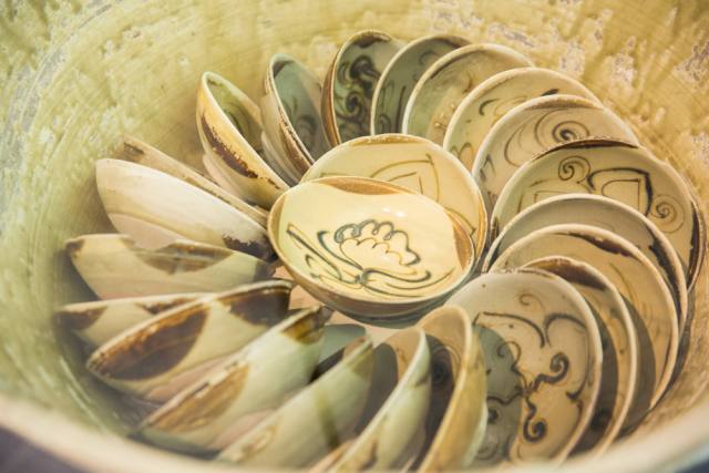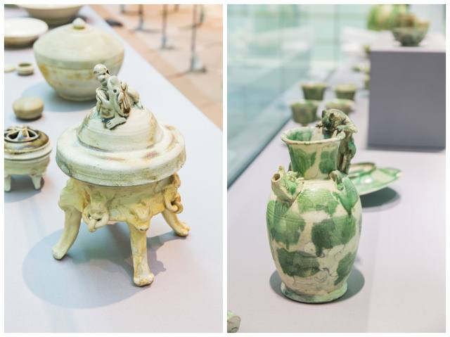 沉船上发现的瓷器既有来自中国北方邢窑的白瓷,也包括大量产自中国南方的青瓷。在发现的青瓷中,除有近200件产自越窑,还有大量产自长沙窑的瓷器。长沙窑青瓷多为模仿越窑青瓷的釉色和造型烧制而成,以日常用品居多,但也不乏做工精致、造型独特的青瓷。这些瓷器深受外国买家喜爱,其踪迹遍布中东和东南亚。