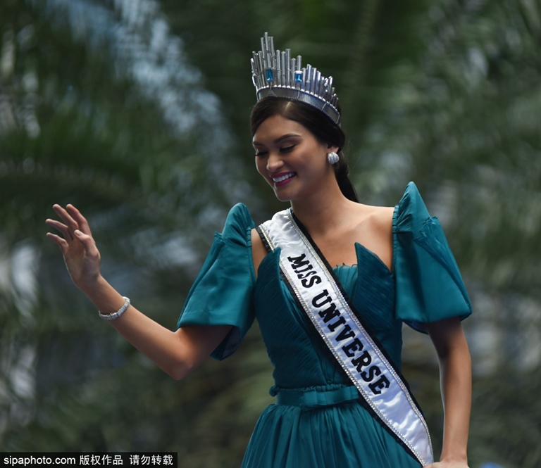 当地时间2016年1月25日,菲律宾马尼拉,菲律宾小姐皮雅·阿龙佐·乌兹巴赫(Pia Alonzo Wurtzbach)夺得2015环球小姐冠军,胜利归国游行受支持者追捧。(图片来源:希帕中国)