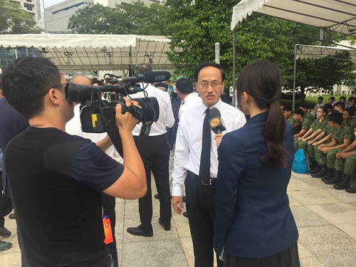 上午9时30分,日占时期死难者纪念碑前拉响“警报解除”信号,祭礼正式开始。当地各族宗教团体代表集体祷告后,新加坡中华总商会、武装部队退役军人、宗教团体、国家学生军团以及学生代表相继向纪念碑献花圈。全场行三鞠躬礼,并在“最后哨声”的军号中默哀一分钟。出席活动期间,陈大使与新加坡文化、社区及青年部长傅海燕简短交谈并接受凤凰卫视采访。