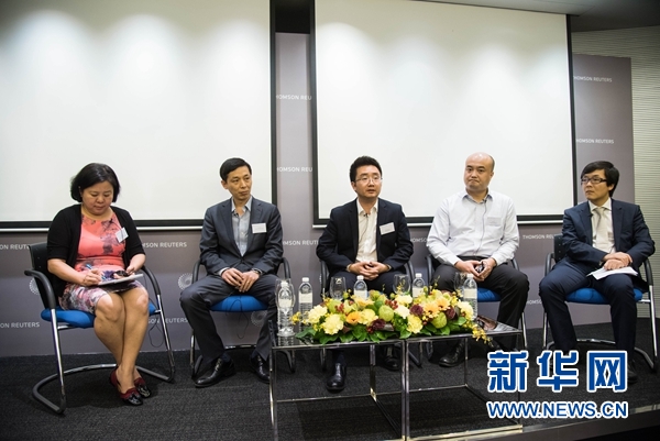 图为3月3日汤森路透新加坡中资企业研讨会现场,各界代表就中国企业“走出去”等议题进行讨论。新华网发 (王应耀 摄)