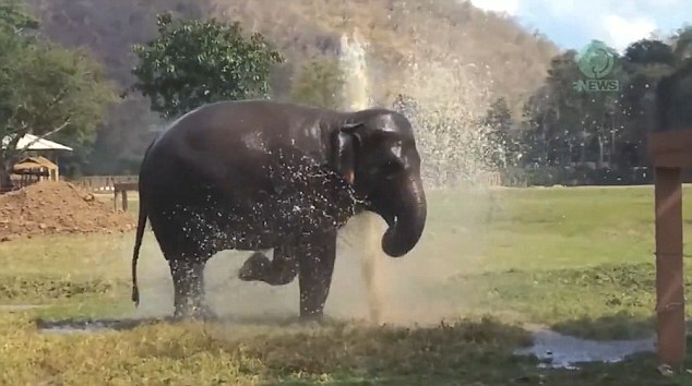 据英国《每日邮报》3月14日报道,在泰国清迈的大象自然保护公园里,一只被救来的大象在这个新的家园里尽情享受着自己的快乐,每天都弄坏草地上的自动喷水设施,给自己创造“喷泉家园”,自娱自乐地玩水,不亦乐乎。