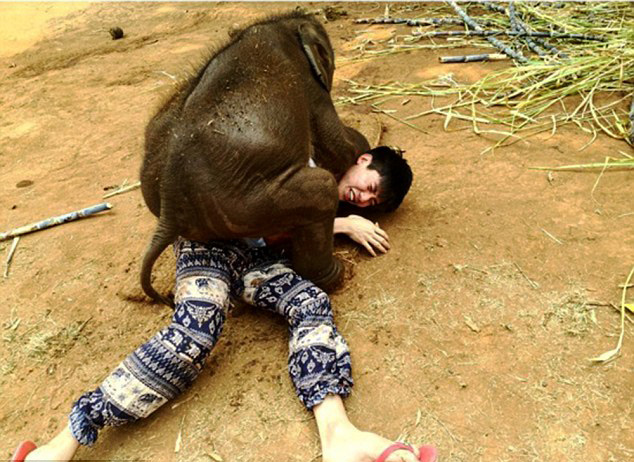 泰国小象爱与游客“零距离接触” 画面温馨(组图)