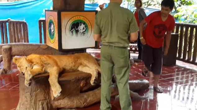 据英国《每日邮报》4月7日报道,近日,网上曝光了印尼莎华丽野生动物园强迫狮子与游客拍照的视频。视频中的狮子反应迟钝、萎靡不振,管理员强迫其面朝摄像头与游客拍照,每张照片收取1英镑的费用。这段视频在网上疯传,外界怀疑该动物园对狮子注射了麻药,引起了相关部门的重视。
