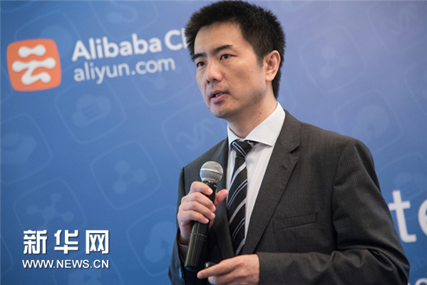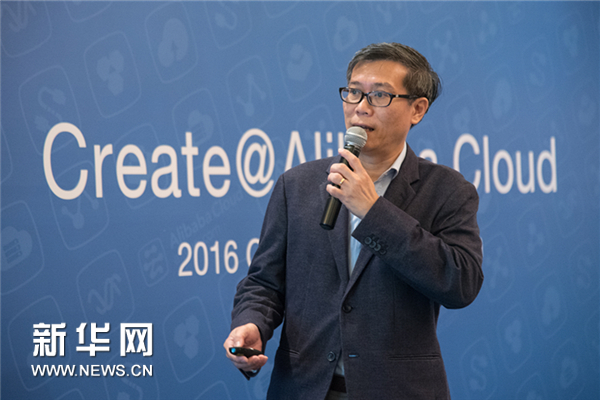 图为阿里云副总裁喻思成11日在新加坡介绍阿里云旗下首个全球创业孵化项目“Create@Alibaba Cloud”。(王应耀 摄)