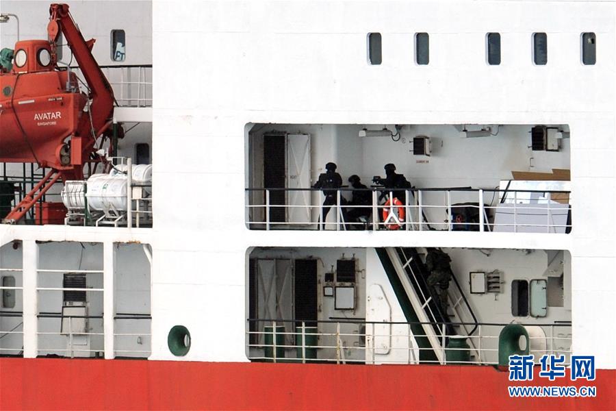 5月8日,新加坡反恐特遣部队人员在联合演习中进行登船解救行动。当日,来自文莱、泰国、韩国与新加坡的反恐特遣部队在东盟防长扩大会议海上安全与反恐联合演习第二阶段中,联合实施“海上风暴”行动,武力解救被劫持船舶“Avatar”号。新华社发(邓智炜摄)
