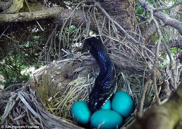 残酷大自然:越南“贪吃蛇”偷吃鸟蛋(图)