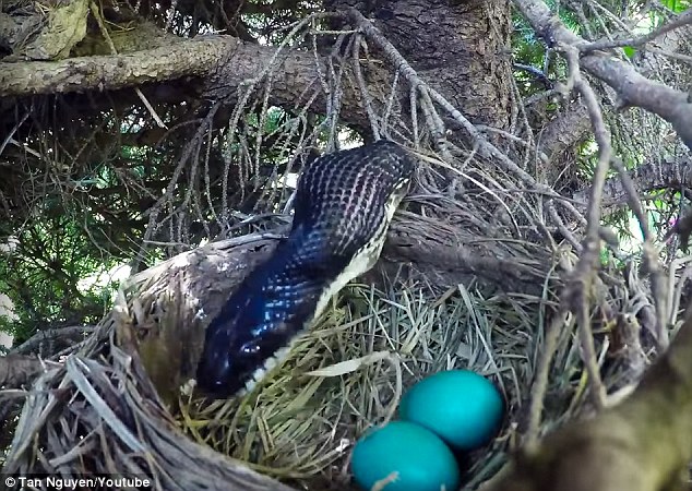 残酷大自然:越南“贪吃蛇”偷吃鸟蛋(图)